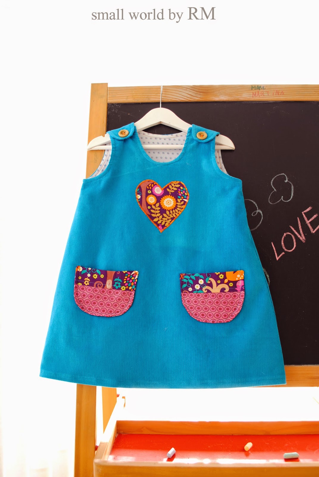 Vestido pichy, realizado en suave micropana, totalmente forrado, detalle de corazón y bolsillos parche, se abotona en la parte superior (hombros).